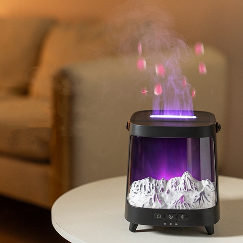 Fashion Simulated Snow Mountain Aurora Diffuser with Colorful Flame Home Desktop 200ml Essential Oil Fragrance Machine